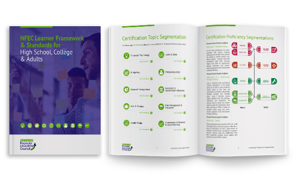 In collaboration with education leader Heidi Jacobs, the NFEC created these financial literacy standards to define learning goals and educational targets for optimal child financial education. Guided by strong pedagogical theory, the standards ensure that instructional targets are age- and developmentally-appropriate and that lessons can be effectively scaffolded. Standards represent five sections based on topic areas in the NFEC curriculum.